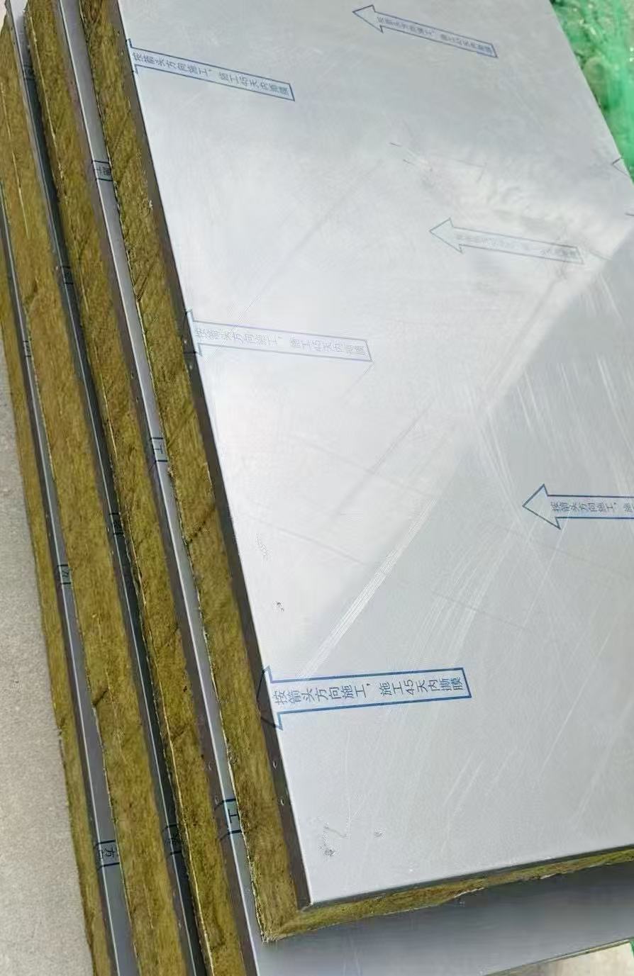 该产品采用了品牌铝板作为装饰层,品牌岩棉条作为保温层,并通过无胶复合工艺,实现了铝板、岩棉等材料的紧密结合。聚氨酯原料在发泡过程中形成的物理咬合和化学键合,确保了复合板的安全环保、粘结牢固、保温隔热性能好、防水性能优异等特点。
