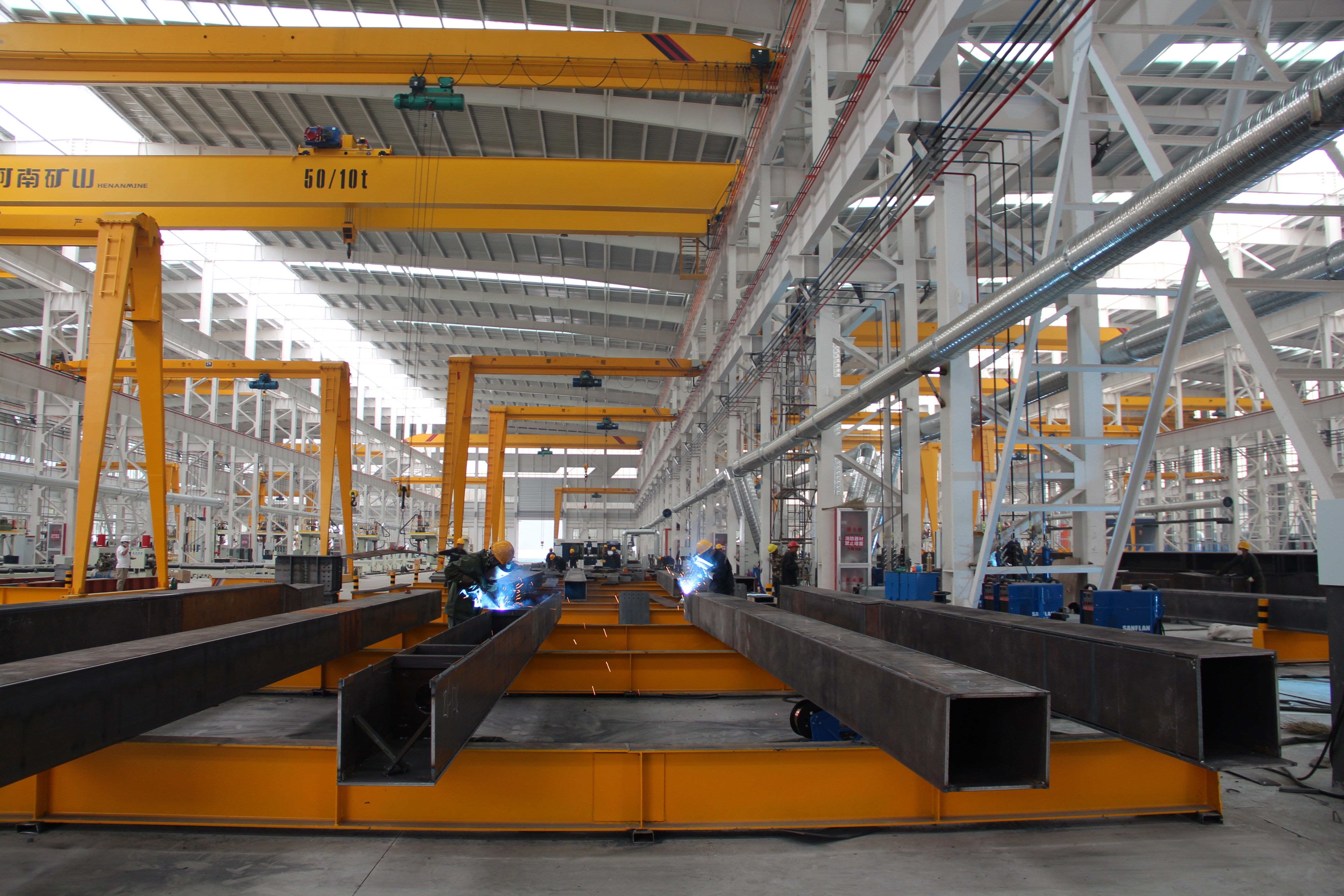 在建筑工程中,尤其是高层建筑和大型公共建筑,如摩天大楼、体育场馆、商业综合体等,箱型柱作为框架结构的核心支撑构件,为整个建筑提供稳定可靠的承重支持。在桥梁工程里,箱型柱常被用作桥墩和桥台的主要承重部件。在轨道交通领域,地铁站的站台支撑、隧道内部的结构加固等也会用到箱型柱。